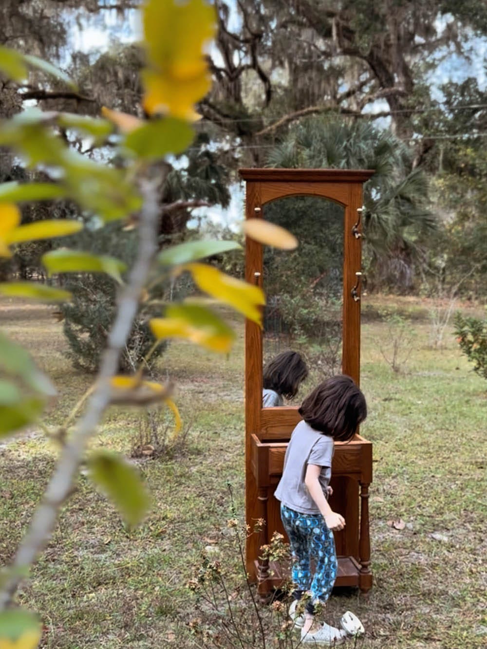 And, as it turns out, a hall tree can function as a handy side table and towel rack.